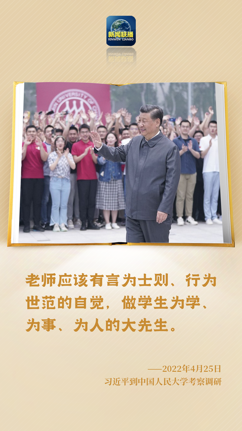 2022年4月,习近平总书记在中国人民大学考察时强调,老师应该“做学生为学、为事、为人的大先生,成为被社会尊重的楷模,成为世人效法的榜样”。