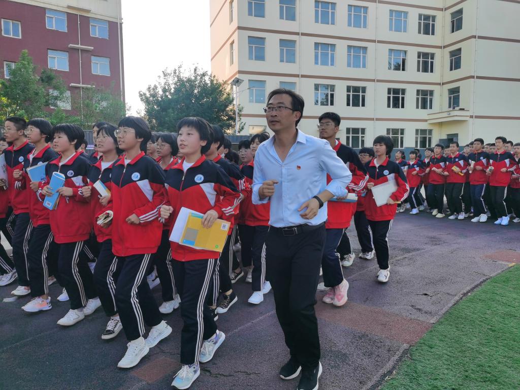 “希望我们国家的教育事业蓬勃发展,希望我们的教育大家庭永远幸福。”拍摄完全家福,付晓强许下了他的教师节愿望。(记者冯维健)