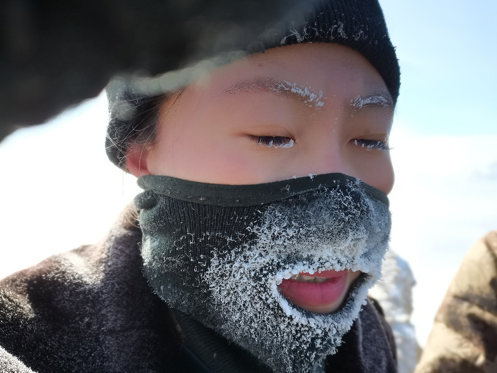 而我在为他们骄傲的同时,也为自己感到格外自豪,因为我在这里也收获了一枚“军功章”——那就是脸部一处两厘米长的冻疮。