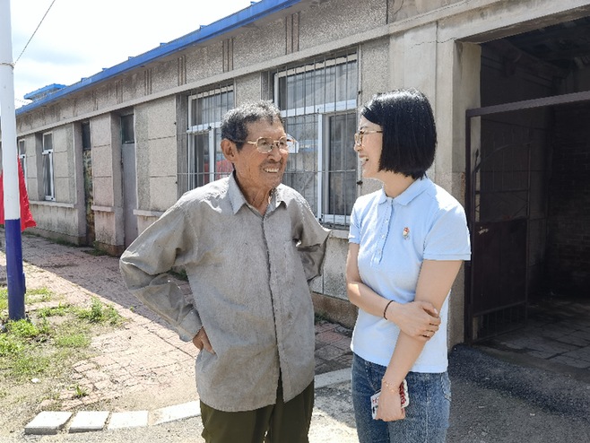 沈阳广播电视台肖夏 采访抗美援朝老兵孙德山时的照片