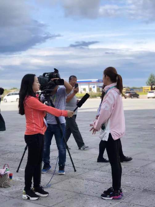 伊春市融媒中心 孙睿美 2019年8月,孙睿美(左一)在嘉荫县茅兰沟国家森林公园采访景区游客