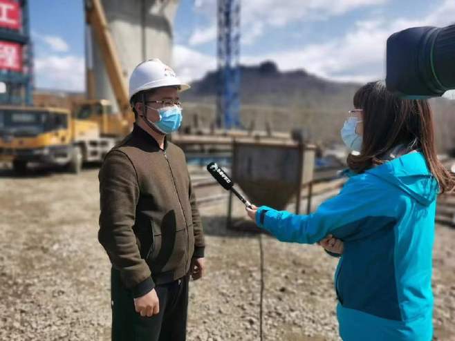 伊春市融媒中心 孙睿美 2022年4月,孙睿美(右一)在哈伊高铁铁伊段采访项目建设者