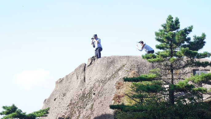 安徽新媒体集团 高佳 拍摄“中国好人”黄山风景区守松人胡晓春日常工作