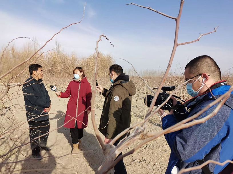 兵团广播电视台-苗羽莹-十四师昆玉市的枣园里,职工在自家的身份地里话一年的丰收喜悦