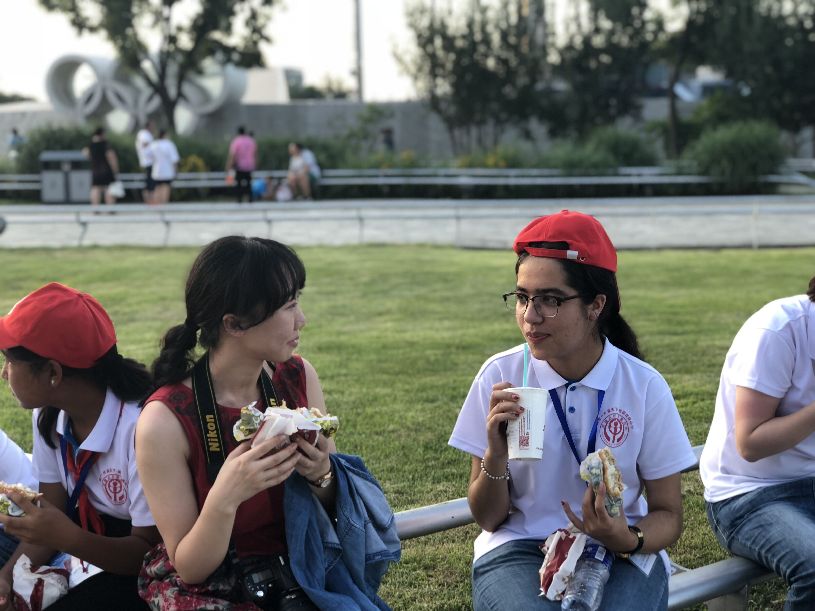 兵团日报社-徐彤彤-在和参加夏令营的学生交流