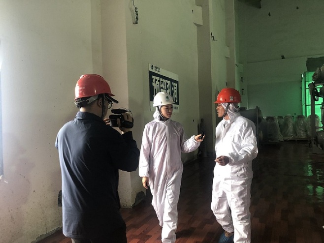 英大传媒集团 张雪霏 在吉隆变电站采访GIS室防尘措施