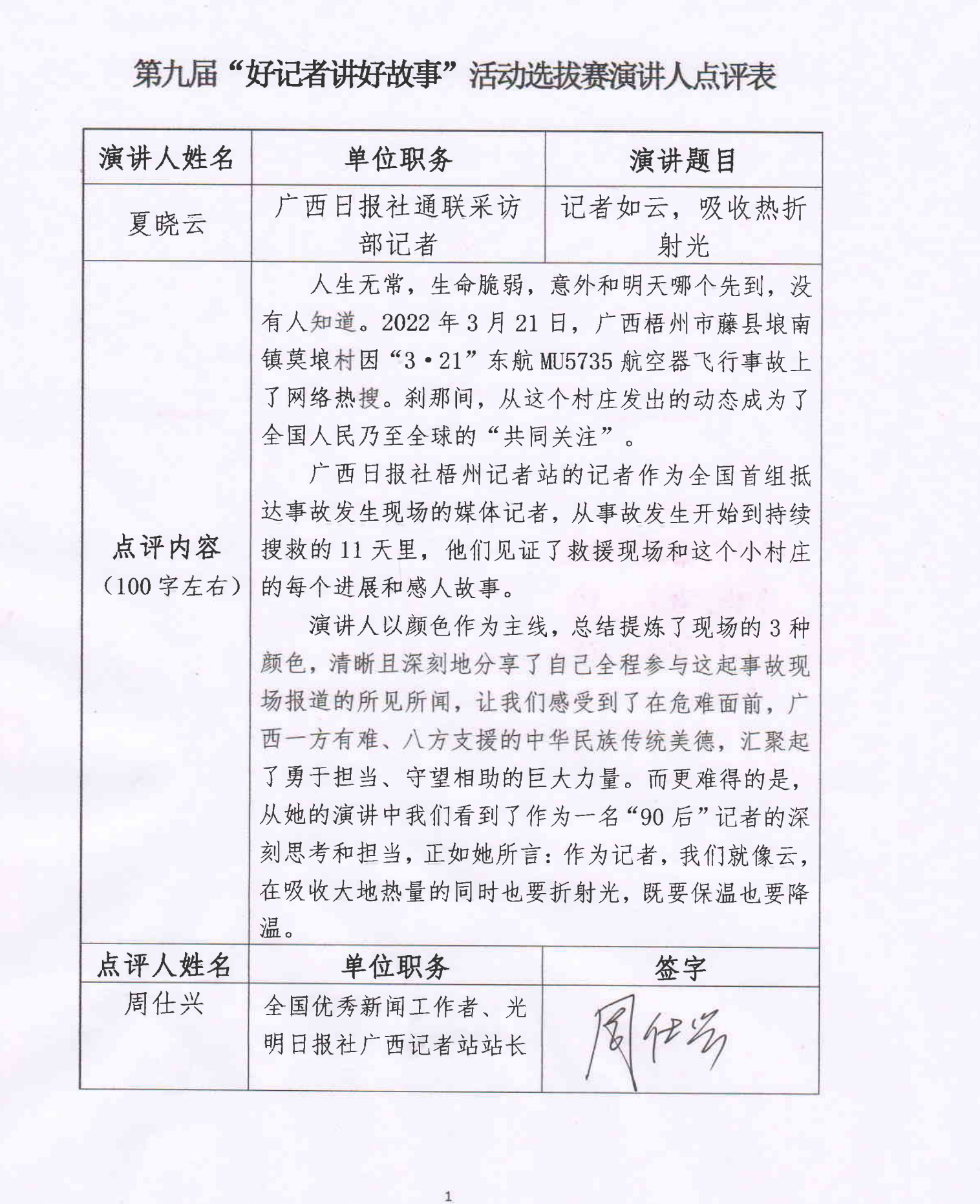 大家好,我是来自广西日报的记者夏晓云,今天天气很好,刚刚过来的路上,我吸收了一路上的热量,此刻,我想将这些热量分享给大家。