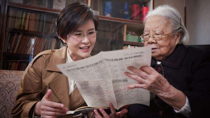 中央广播电视总台 王宁 采访新中国第一代考古人郑振香(记者左1)