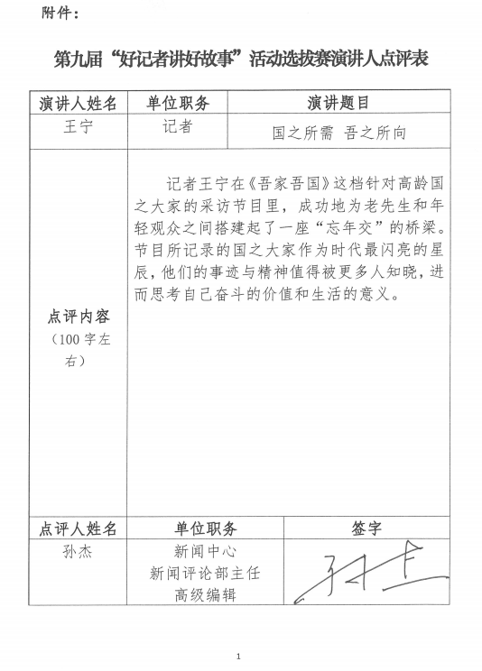 每次采访,我都在反复深刻着:究竟什么是一个记者的初心?我要努力把他们这种生活里简朴、事业中坚守、信仰上忠诚的精神,传递给更多的观众。因为这种精神的传承才是中华民族文明发展的基因,是中华民族复兴的伟大力量。新闻工作者就是要把这样的力量传递出去,让更多人听见了,听进去,传下去。这样的信念,也是记者这份职业的意义。