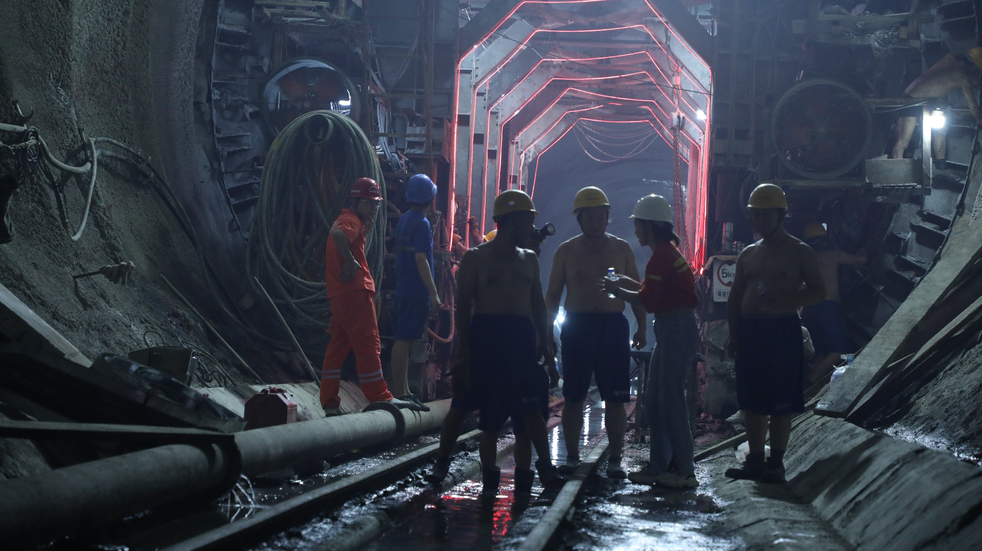 在保护好生态环境的前提下,打通一条近百公里长的地底隧洞,把汉江里的长江水输送到黄河流域的渭河里去!“引汉济渭”,这是人类历史上首次尝试“从底部贯穿世界十大主要山脉之一秦岭”的史诗壮举。相信很多人都知道世界最高建筑物迪拜塔有162层,那我要去的这个相当于六百多层楼深的地底又会是什么样呢?那天进入地下后,在先坐大巴、再乘小火车、最后徒步跋涉的一个多小时路程上,我的心慢慢揪了起来:与一开始的彻骨阴冷截然相反的是,越来越多滚烫的地下水像岩浆一样向外翻涌,高温、强噪、呛人的硫磺味和高达90%的相对湿度让我喘不上气,双眼模糊。这里就是个烧开了泥汤的高压锅啊!而面前的这群建设者们,已经在这样的“又蒸又煮”中奋战了十年了。我问:你们是怎么挺过来的啊?一个跟我差不多年纪、叫彭良的小伙憨厚地笑了,满身的油泥粉尘中只露出了明亮的眼睛和洁白的牙齿,他指了指身上的防弹衣说:这才到哪儿啊,你还没见过岩爆吧?