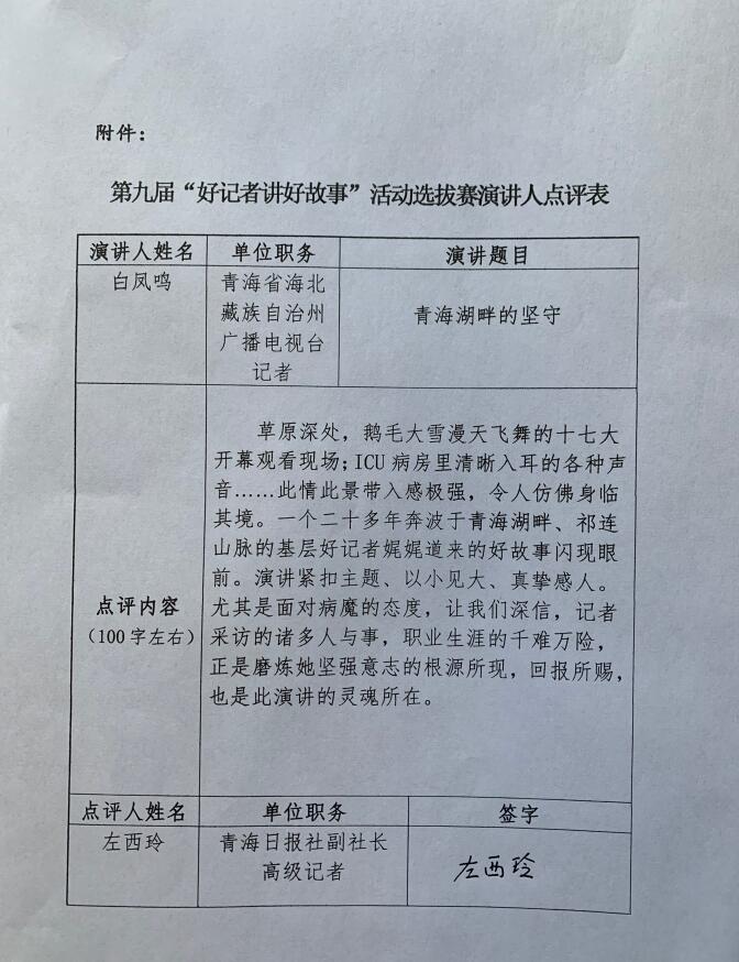 我叫白凤鸣,是海北州电视台记者。先向大家致歉,因为身体原因,我现在走路的平衡性有点差,长久站立会有不稳的现象,请见谅。能在这里和大家分享我的故事,百感交集。