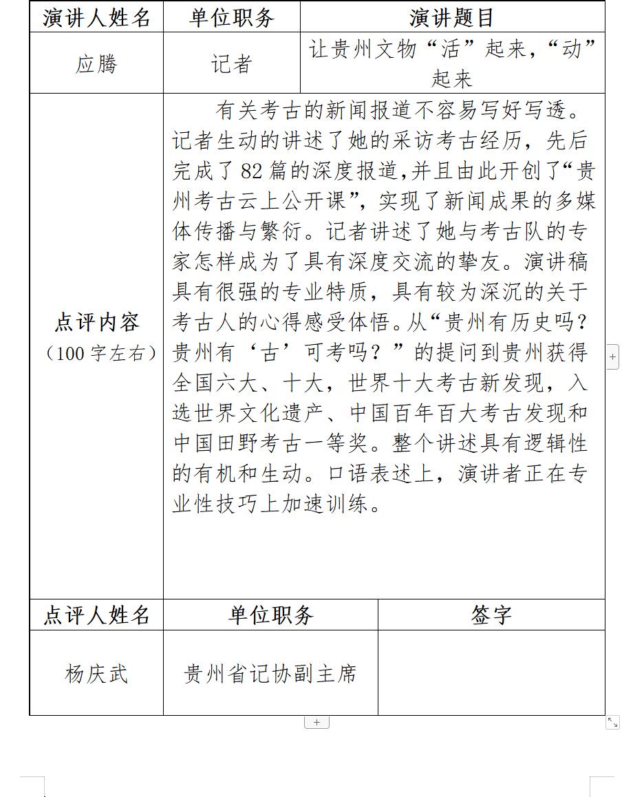 第九届“好记者讲好故事”活动选拔赛演讲人点评表