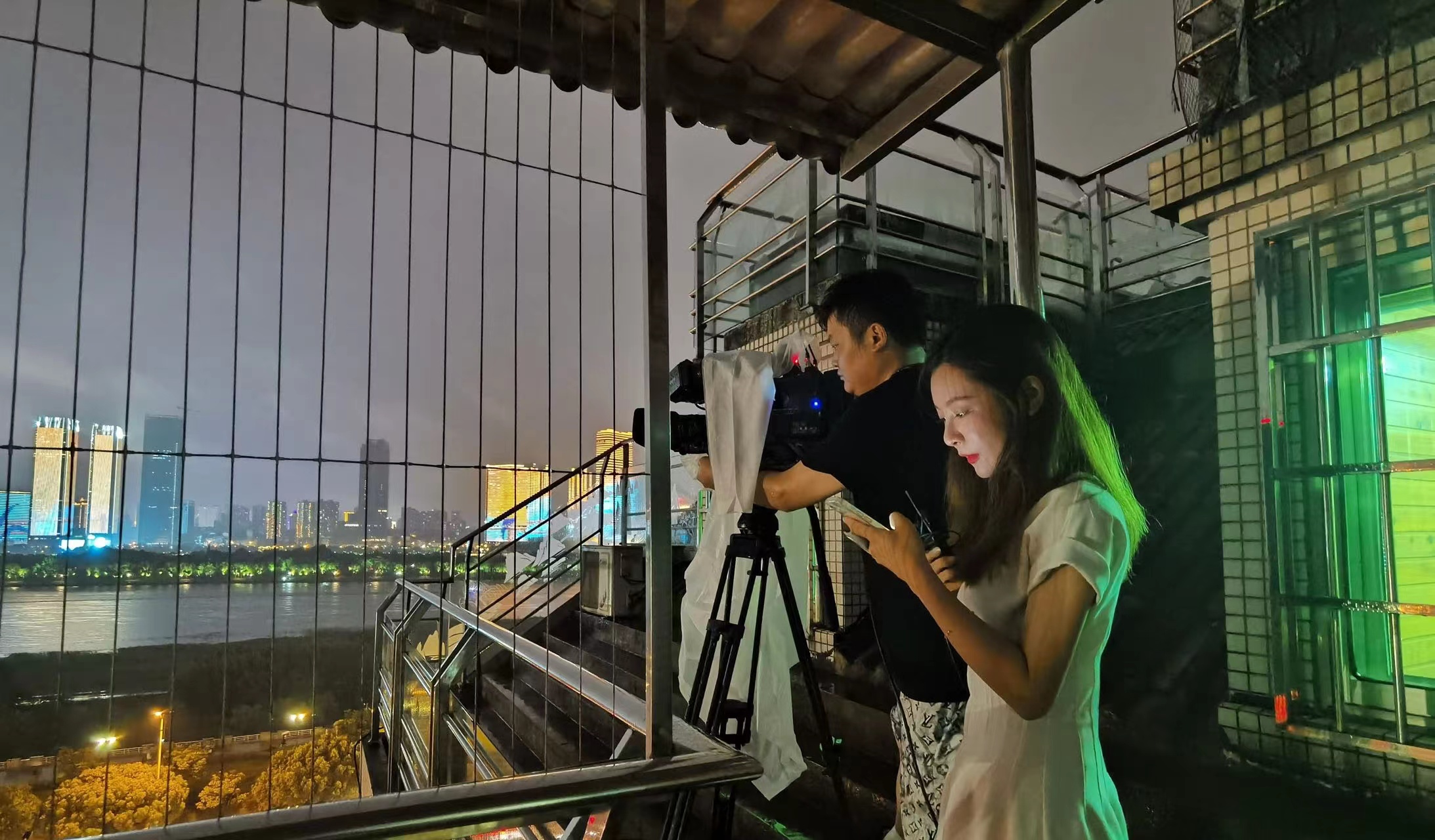 湖南日报社徐果婧-2021年6月30日晚,担任“最美橘洲焰火晚会献礼党的百年华诞”直播记者,在直播点准备讲解中