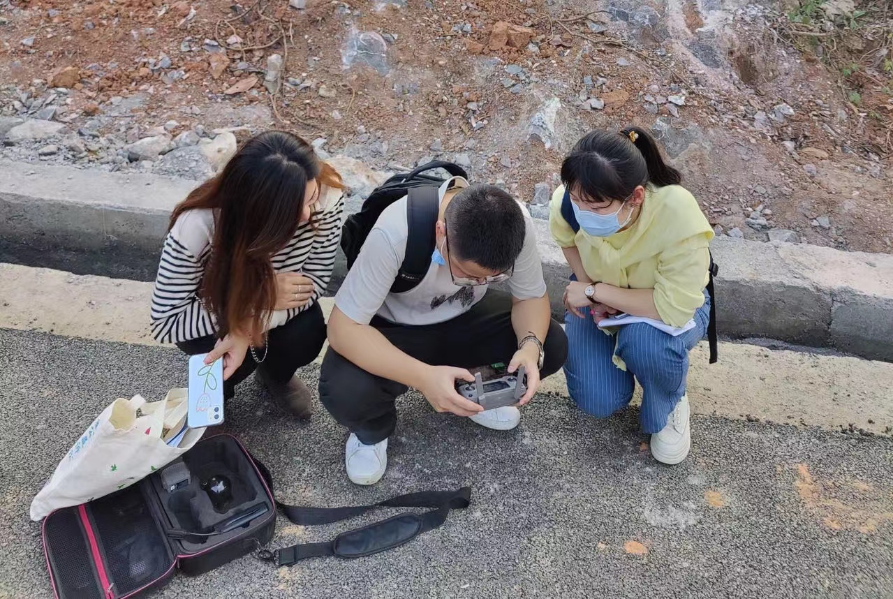 湖南日报社徐果婧-汝城县沙洲村,工作间隙,同事正在拍摄沙洲村“幸福新村”的航拍