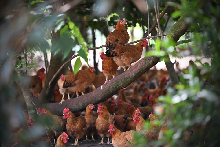 图为2022年7月13日在文昌市公坡镇东坑村拍摄的文昌鸡。新华社记者郭程 摄