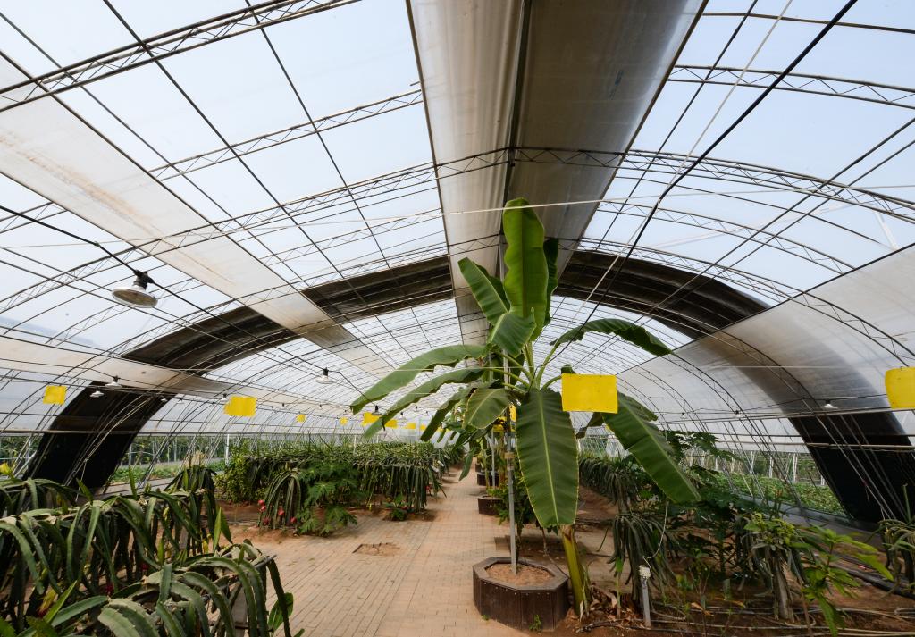 9月16日青皮她园内的火龙果树和香蕉树。(新华社记者邹竞一 摄)