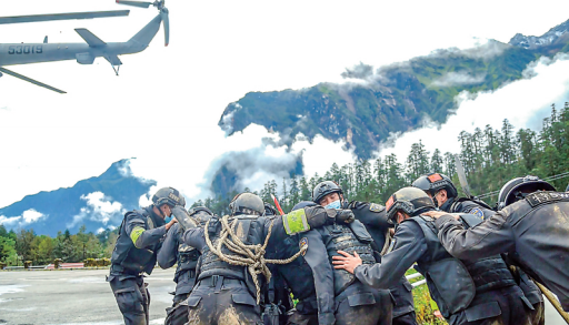 “9·5”地震发生前两周,特警支队举行了一次警务技能大比武。比武科目包括高海拔山地武装奔袭、简易担架制作、伤员应急处理、伤员转运、结绳……两周后,他们来到另一个比武场,这一次是与死神较量。