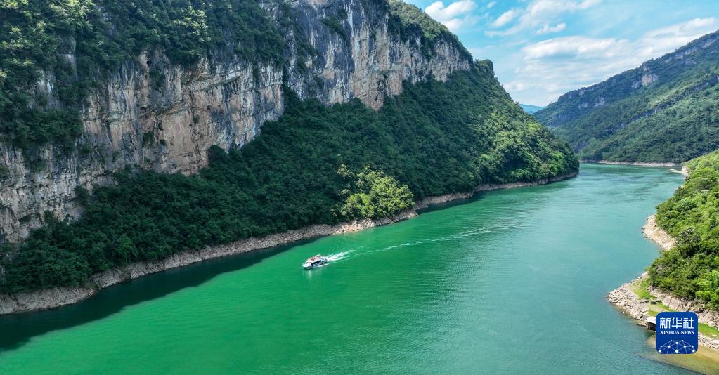 游人乘船在重庆市酉阳土家族苗族自治县乌江画廊景区游玩(2022年7月12日摄)。新华社发(邱洪斌 摄)