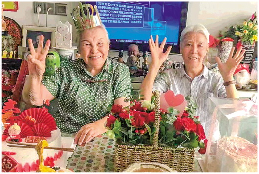 今年生日,郑小瑛(左)和老伴的合影。采访对象供图 本报记者许雪毅