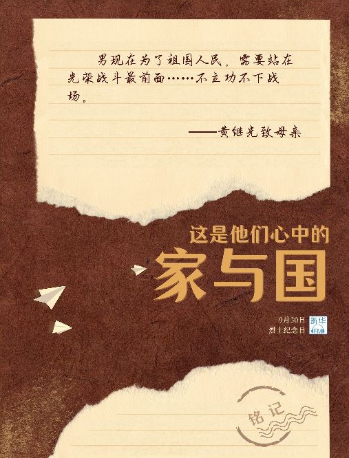 抗美援朝战场上,志愿军战士黄继光给母亲的信写道,“男现在为了祖国人民,需要站在光荣战斗最前面……不立功不下战场”。信寄出5个月后,他在上甘岭战役中用身体堵住枪眼,为战友冲锋开辟通道,牺牲时年仅21岁。