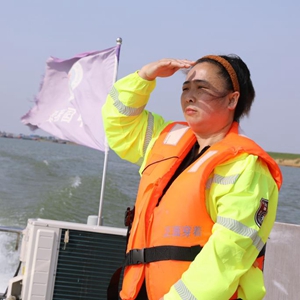 初秋的早晨,水面清澈,江风微凉。渔政船的马达声打破了江面的宁静,只见一人在船头开船,另一人在船尾用望远镜不时观察,打捞江面的垃圾,二人配合十分默契。