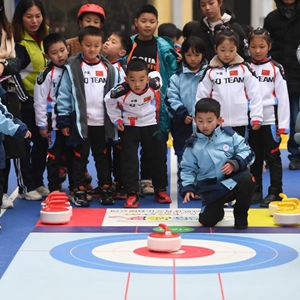 湖南省长沙市长塘里崇德小学学生在课后体验旱地冰壶运动(2022年1月7日摄)。新华社记者 薛宇舸 摄