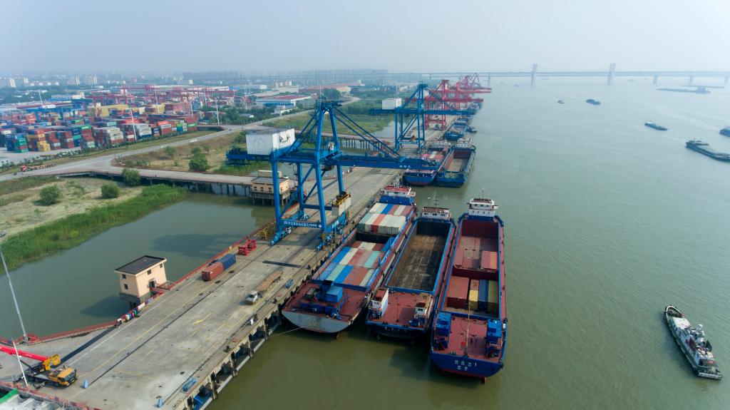芜湖港国际集装箱码头一派繁忙景象。新华社发(何达 摄)