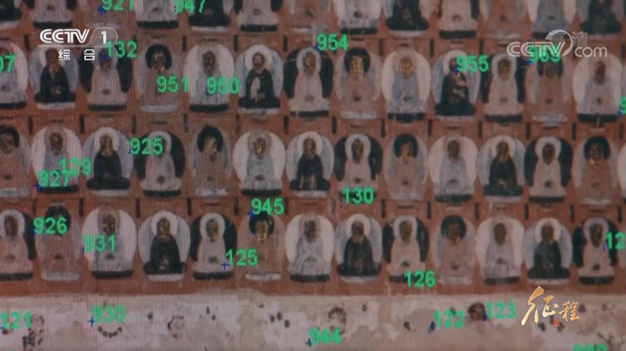 敦煌研究院保护研究部部长 吴健:就一层一层要拍,拍完才能拼到一块。我们像这样的一个,大概就是1米5乘1米5,这样一个方格,我们要拍几百张图片。把它拼起来,才能达到我们所需要的精度。