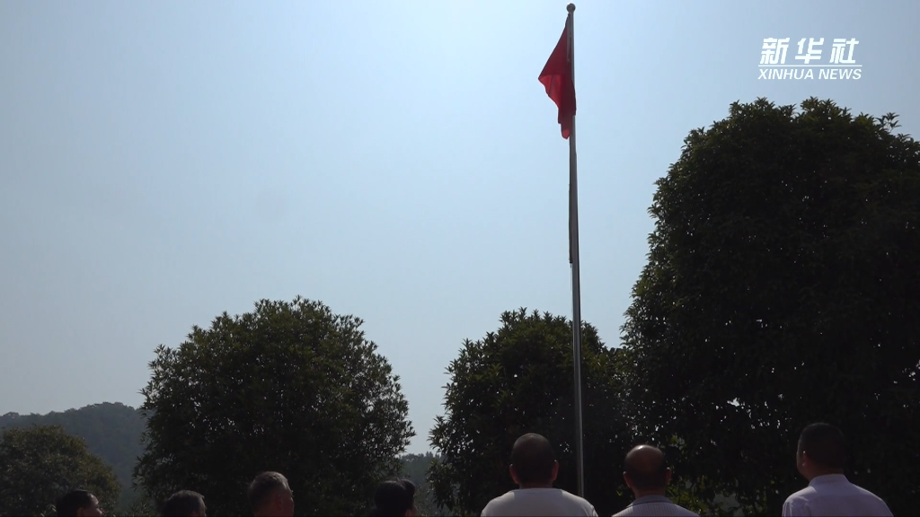 鲜艳的五星红旗冉冉升起,升旗人是江西省萍乡市东桥村村民汤春梅和她的女儿。而这样的升旗仪式已经进行了34年。