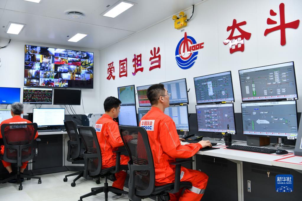 中海油工作人员在“海基一号”控制室里进行操作(9月30日摄)。新华社记者 梁旭 摄