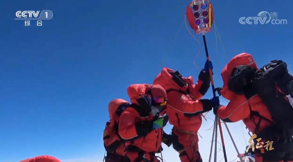 5月27日上午11点,经过9个小时的攀登,测量登山队员成功登顶珠峰。