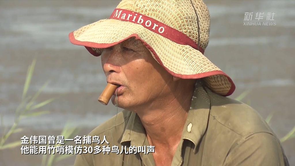 金伟国曾是一名捕鸟人,他能用竹哨模仿30多种鸟儿的叫声。1998年保护区成立后,他成为一名护鸟员,配合工作人员组织开展鸟类环志工作。环志是研究鸟类迁徙规律、种群结构、物种保护研究、气候环境变化等的一种重要手段。