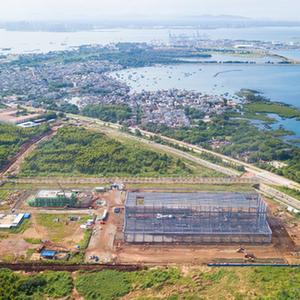图为10月2日在海南洋浦经济开发区拍摄的建设中的申能电气风电新能源装备产业项目(无人机照片)。新华社记者蒲晓旭 摄