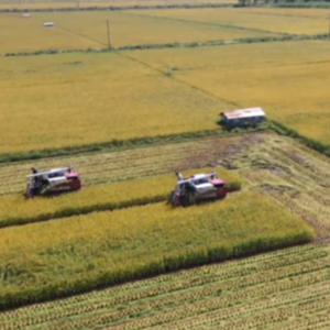 产粮大省吉林秋收工作正在进行中,最新农情调度数据显示,该省水稻收获已超七成。在吉林省水稻主产区舒兰市,有机水稻迎来丰收,多台联合收割机正在稻田中收割作业。