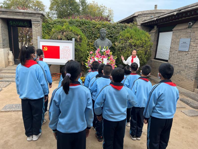 这是在大黑坨小学“红领巾”解说员的带领下,大钊班学生参观故居。采访对象供图