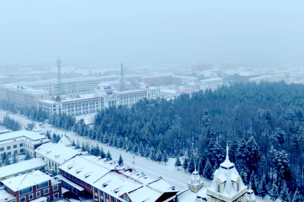 航拍降雪后的漠河市。(受访单位供图)