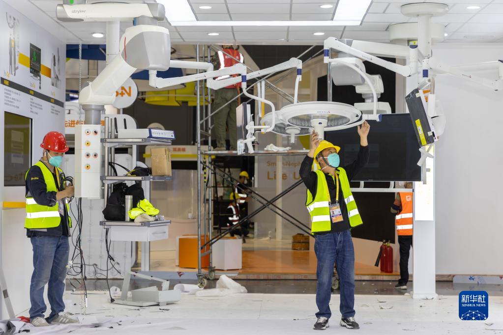 10月31日,工作人员在国家会展中心(上海)内布置第五届中国国际进口博览会展位。新华社记者 王翔 摄