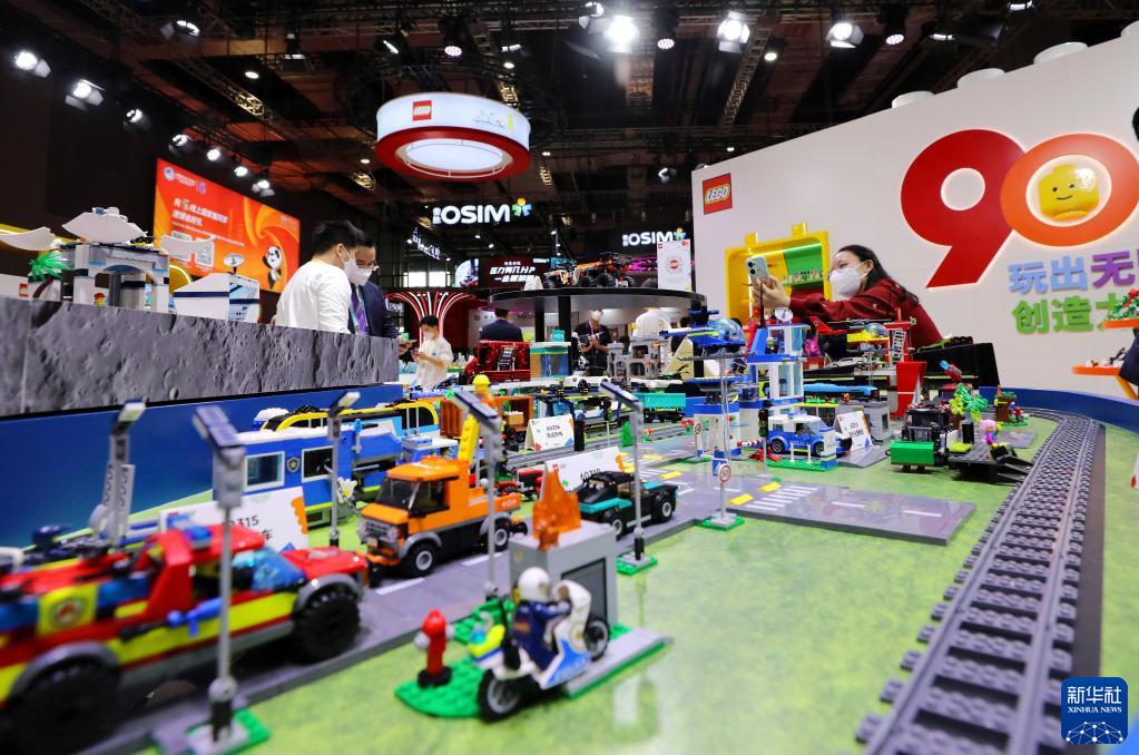 11月6日,第五届进博会丹麦乐高公司的展台吸引参观者。乐高公司连续参加五届进博会,位于上海金山区的上海乐高乐园度假区也正在建设中。新华社记者 方喆 摄