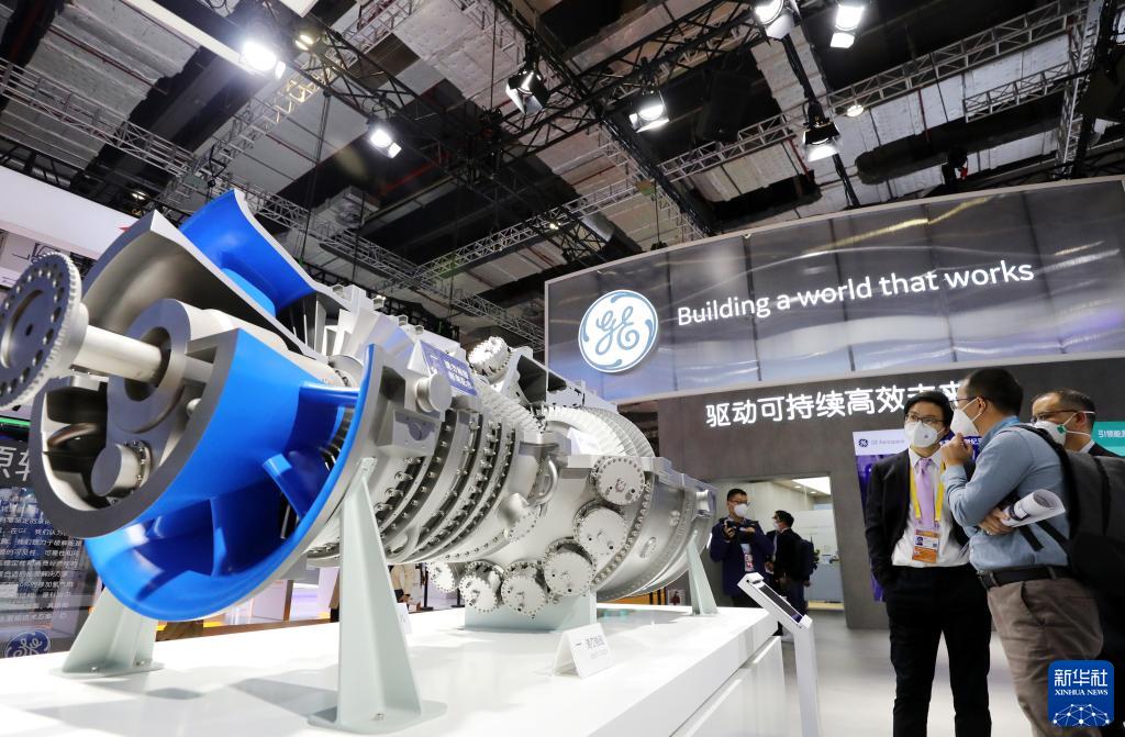 11月6日拍摄的第五届进博会上的美国通用电气公司展台。新华社记者 方喆 摄