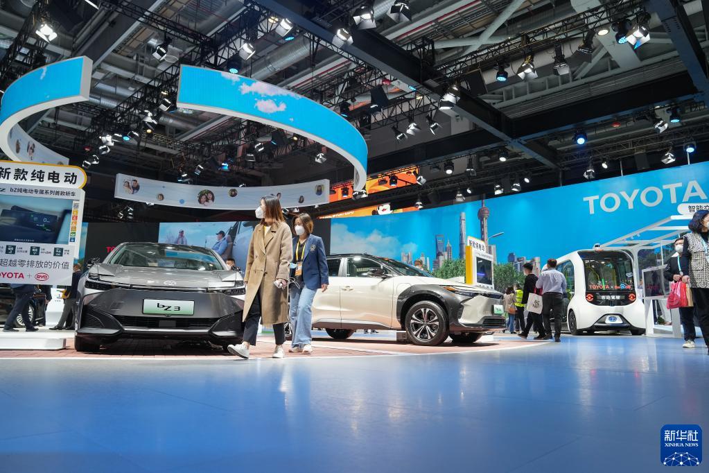 11月7日在第五届进博会汽车展区拍摄的丰田展台。新华社记者 丁汀 摄