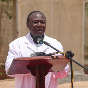 11月4日,在肯尼亚基安布,乔莫·肯雅塔农业技术大学农学院院长戴维·姆布鲁在丰收仪式现场发言。中国科学院中非联合研究中心4日在肯尼亚乔莫·肯雅塔农业技术大学举行示范区白玉米品种丰收仪式,标志着该中心首批本地品种白玉米试种成功。新华社记者 龙雷 摄