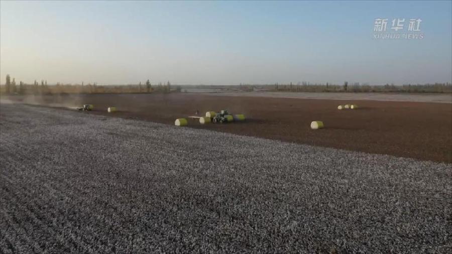 近日,在新疆巴音郭楞蒙古自治州尉犁县,由两个人种植管理的3000亩“超级棉田”喜获丰收,棉花亩产可达400公斤。