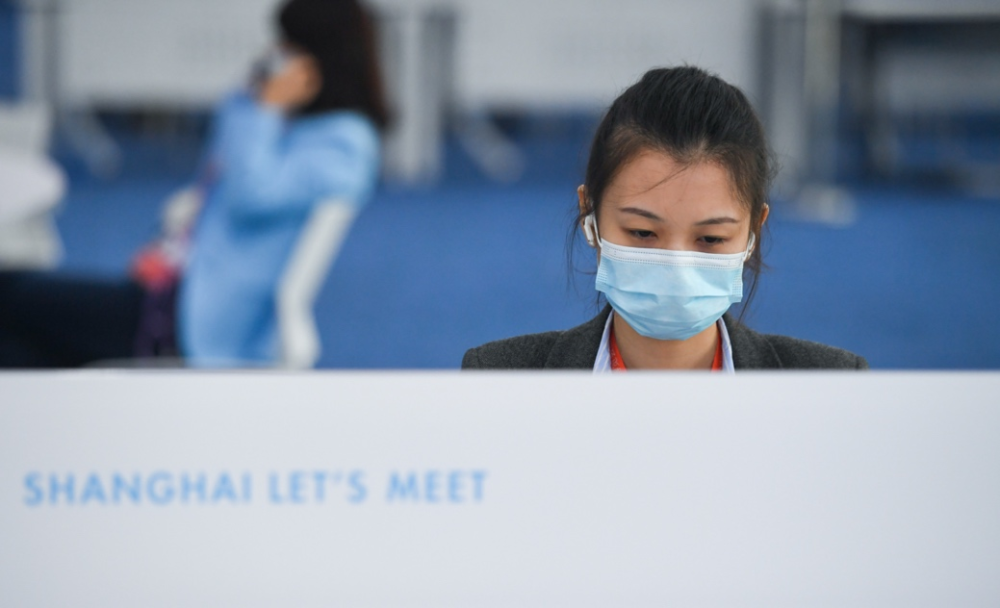 2020年11月8日,媒体记者在第三届进博会新闻中心工作。新华社记者 陈晔华 摄