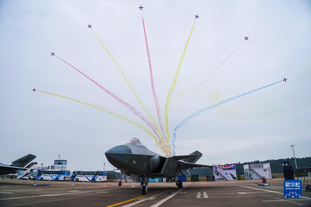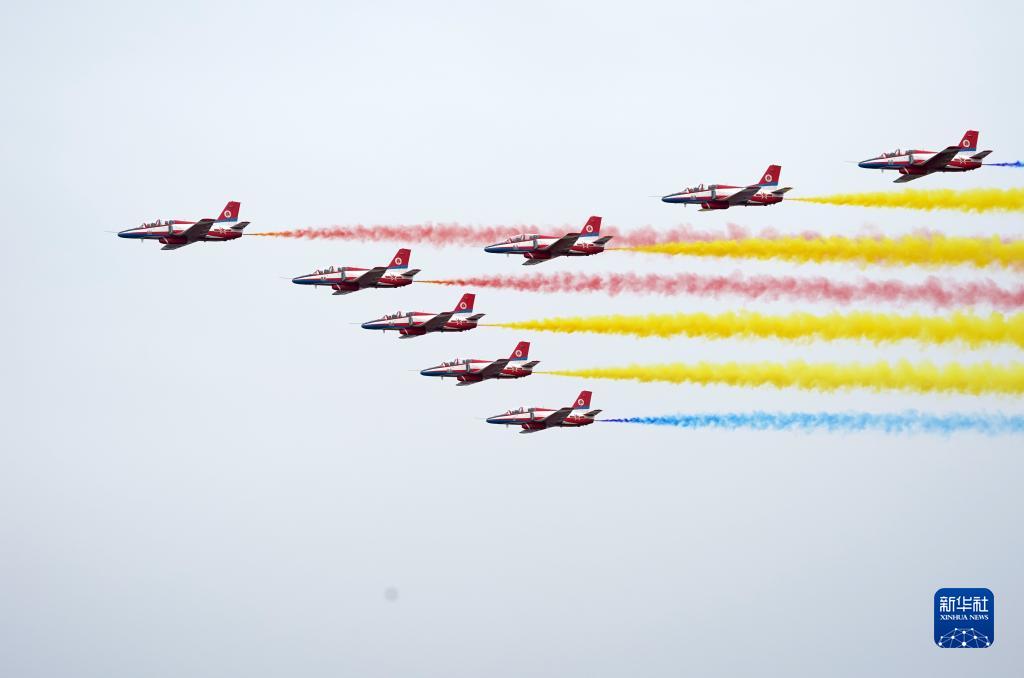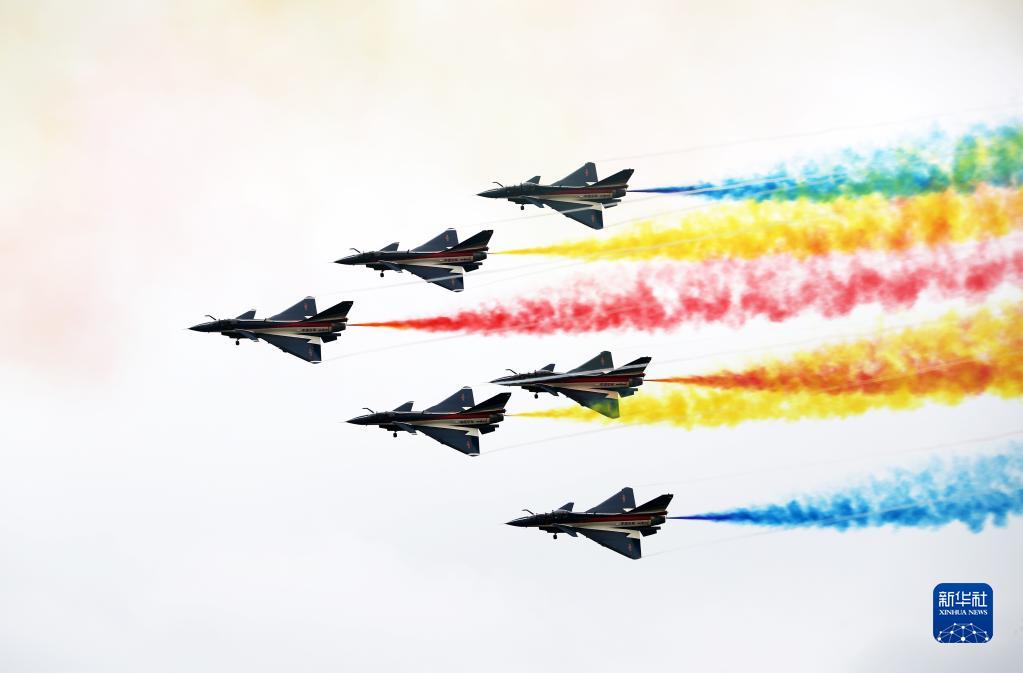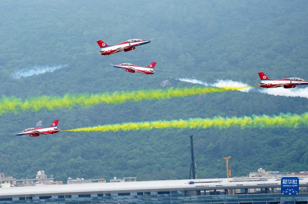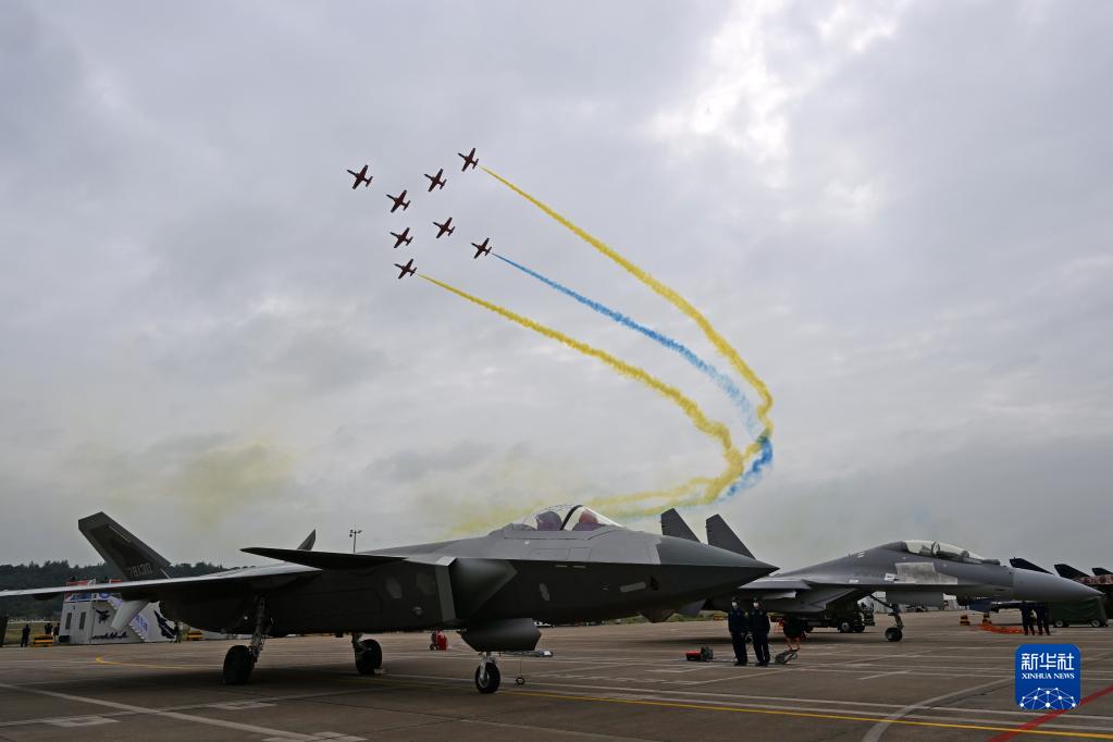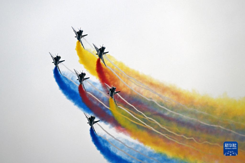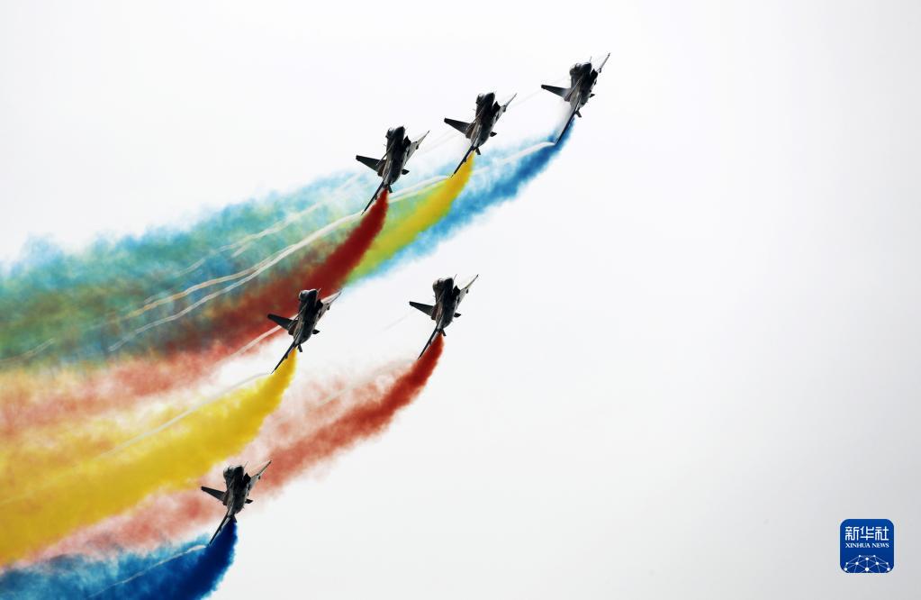 11月8日,空军八一飞行表演队在第十四届中国航展上进行飞行表演。新华社发(余红春 摄)