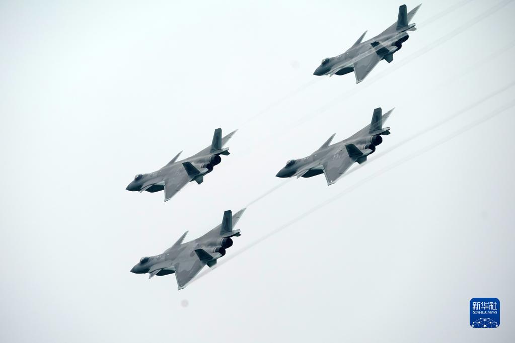 4架歼-20以四机钻石队形低空通场,四机小角度拉升,向所有来宾致意。开幕式上,歼-20表演了四机通场、前双机盘旋、后双机水平交叉、大仰角转弯脱离等精彩动作。空军歼-20飞行员王震介绍说,“整套表演动作充分展示了歼-20优异的操纵品质、良好的机动性能,同时展示了空军日新月异的装备水平,实战化军事训练成绩和捍卫国家主权、安全、发展利益的战略能力。”