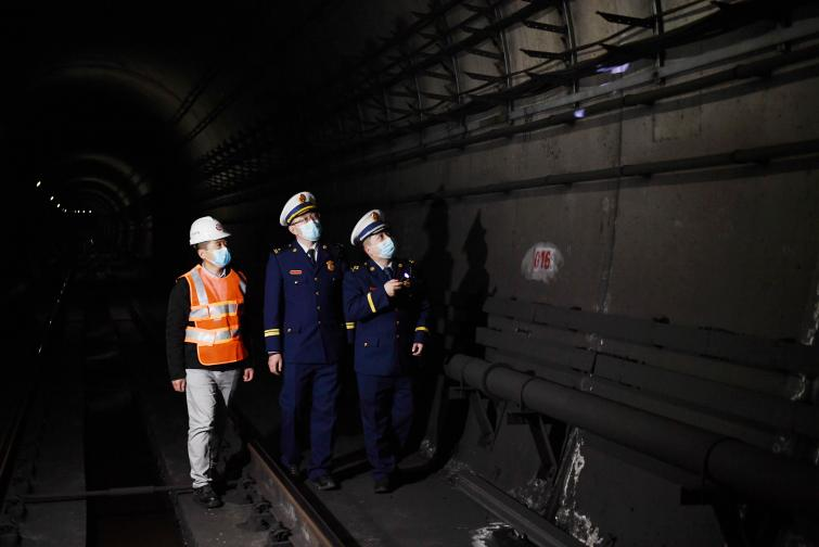 11月3日,消防员对一处正在施工中的地铁站进行安全检查。新华社记者 张晨霖 摄