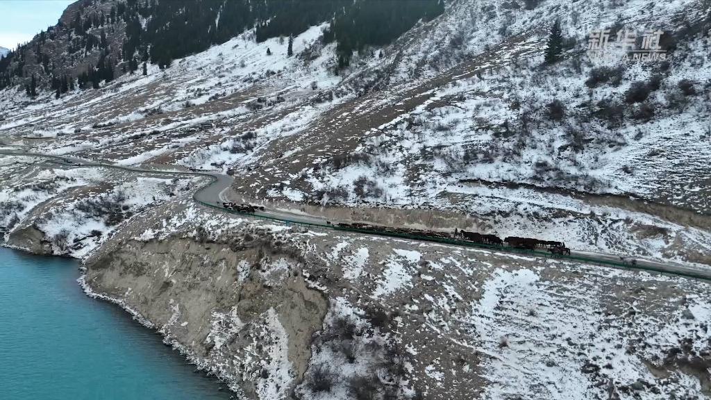 近日,气温逐渐降低,新疆昭苏县阿合牙孜大峡谷周边乡镇的27.7万头牲畜陆续转场。