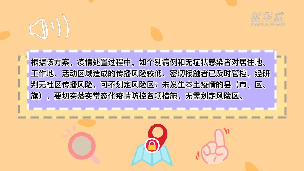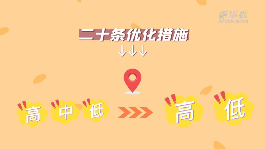 国务院联防联控机制综合组近日公布了《新冠肺炎疫情防控核酸检测实施办法》《新冠肺炎疫情风险区划定及管控方案》《新冠肺炎疫情居家隔离医学观察指南》《新冠肺炎疫情居家健康监测指南》4个文件,进一步指导各地各部门做好疫情防控工作。二十条优化措施将风险区由“高、中、低”三类调整为“高、低”两类。不同风险区域划定的标准是什么?分别需要采取哪些防控措施?点击视频,为您解答。