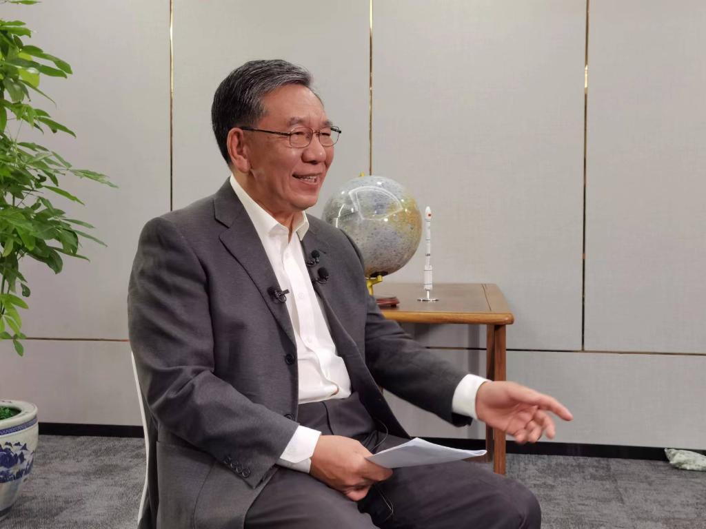 中国工程院院士、中国探月工程总设计师吴伟仁接受新华社记者采访。新华社记者 宋晨 摄