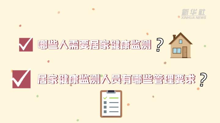 哪些人需要居家健康监测?居家健康监测人员有哪些管理要求?《新冠肺炎疫情居家健康监测指南》明确,适用对象为结束闭环作业的高风险岗位从业人员、新冠肺炎感染者出院(舱)人员及其他经专业人员评估需进行居家健康监测的人员。点击视频,为您解答。